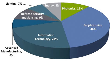 In line with previous years, the Biophotonics sector sees the most activity in 2015 – almost 40% of private placements.  The Diagnostics predominantly includes investments in companies employing fluorescence, optical label-free, and molecular imaging methods to gene, protein, and cell based diagnostic assays and point-of-care devices.  There is a relatively higher volume of investments promising to make cost effective genetic testing and personalized medicine a reality in the not so distance future.  Also, in 2015, there are a significant number of investments in companies offering wearable sensor devices tracking everything from general fitness to environmental toxins.